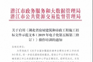 关于启用《湖北省房屋建筑和市政工程施工招标文件示范文本(2019年电子化第五版第三修订)》操作培训的通知