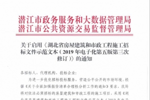 关于启用《湖北省房屋建筑和市政工程施工招标文件示范文本(2019年电子化第五版第三次修订)》的通知
